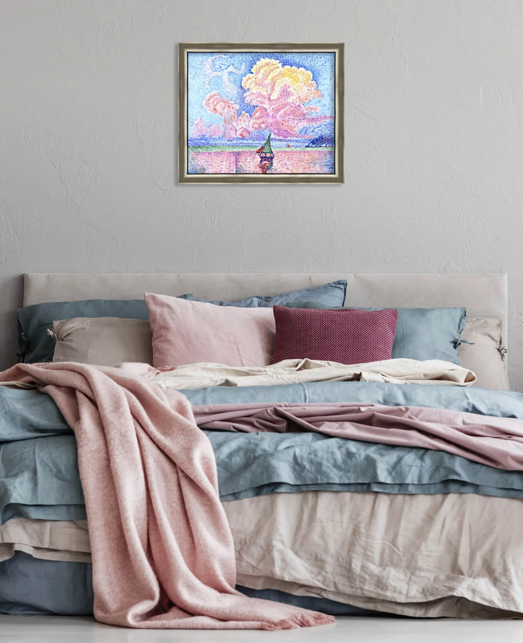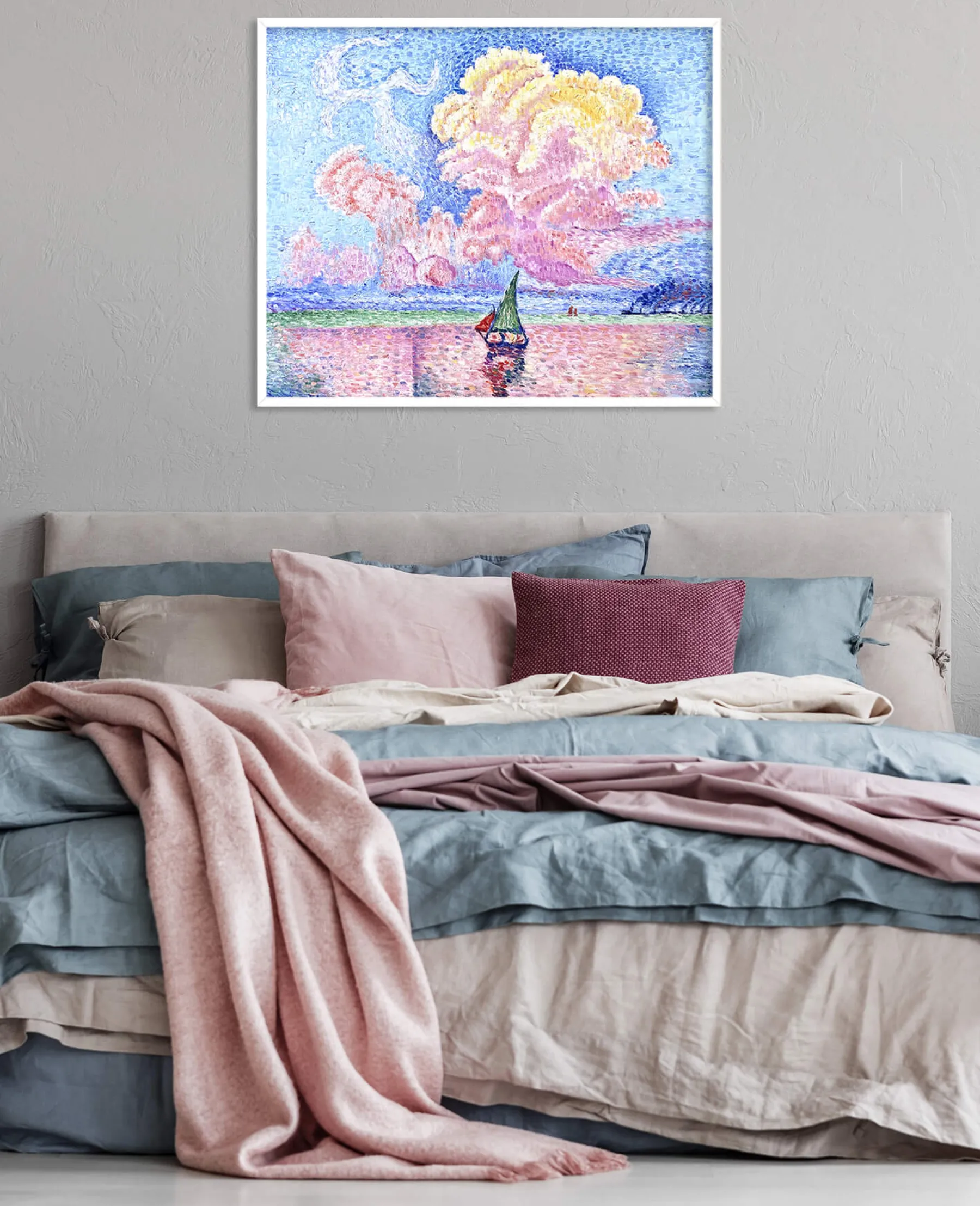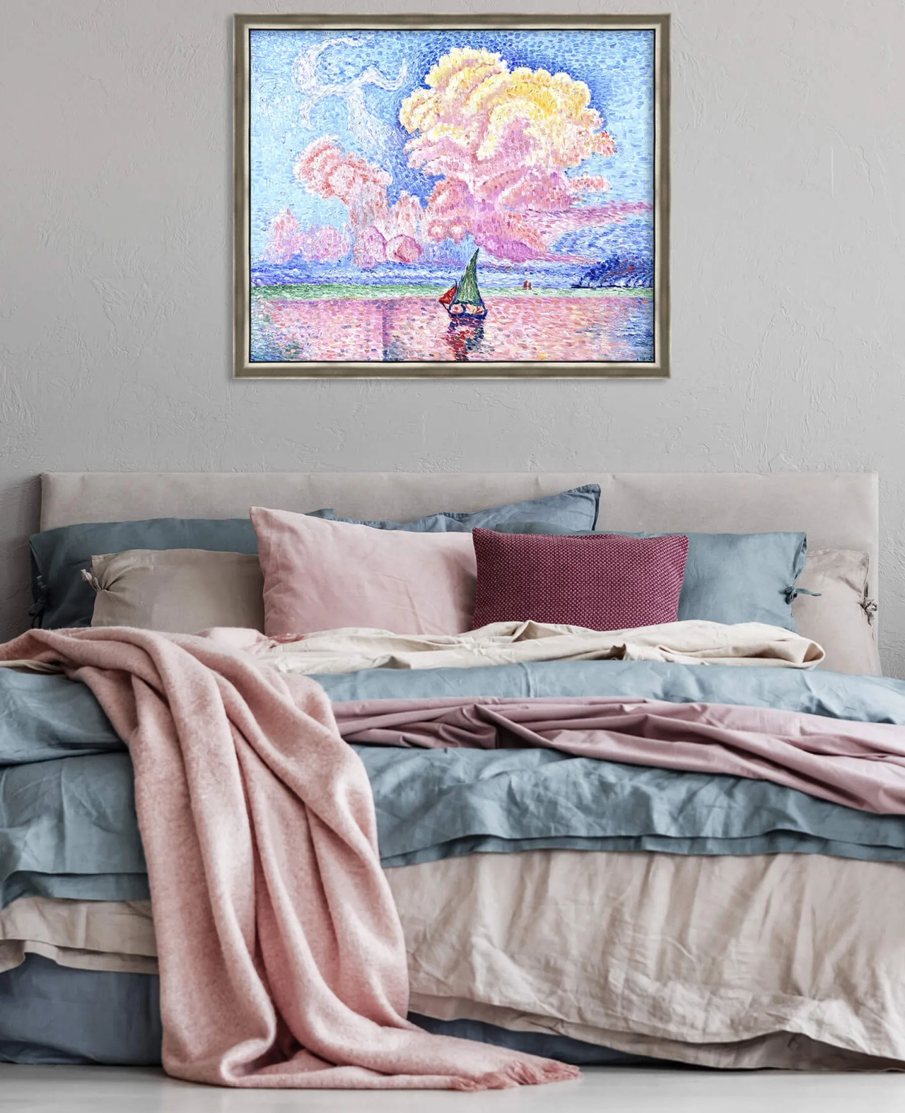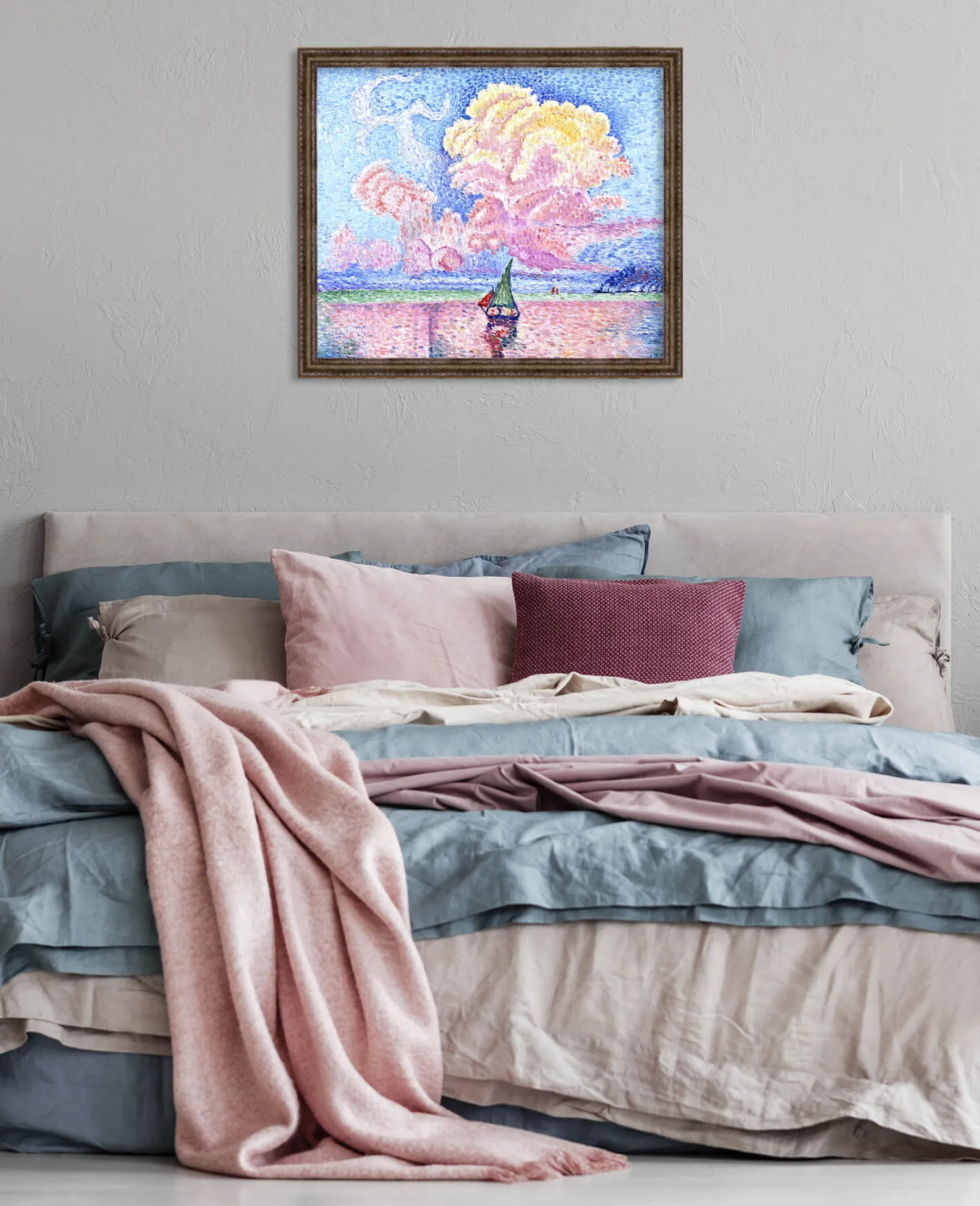 Paul Signac particularly enjoyed exploring the seashores and ports of the Mediterranean coast. The reflections and tranquility of the sea coexist with rosy, almost fairy-like colors. The artist tries to explain all the nuances that the sky takes on during a sunset on the French Riviera. To do this, the colors are not mixed but juxtaposed by small touches, according to the process of division, the essence of the pointillist movement. He became one of its most illustrious representatives.u0026nbsp;This style of painting can be found in several of his works, such as Antibes and Capo Di Noli.