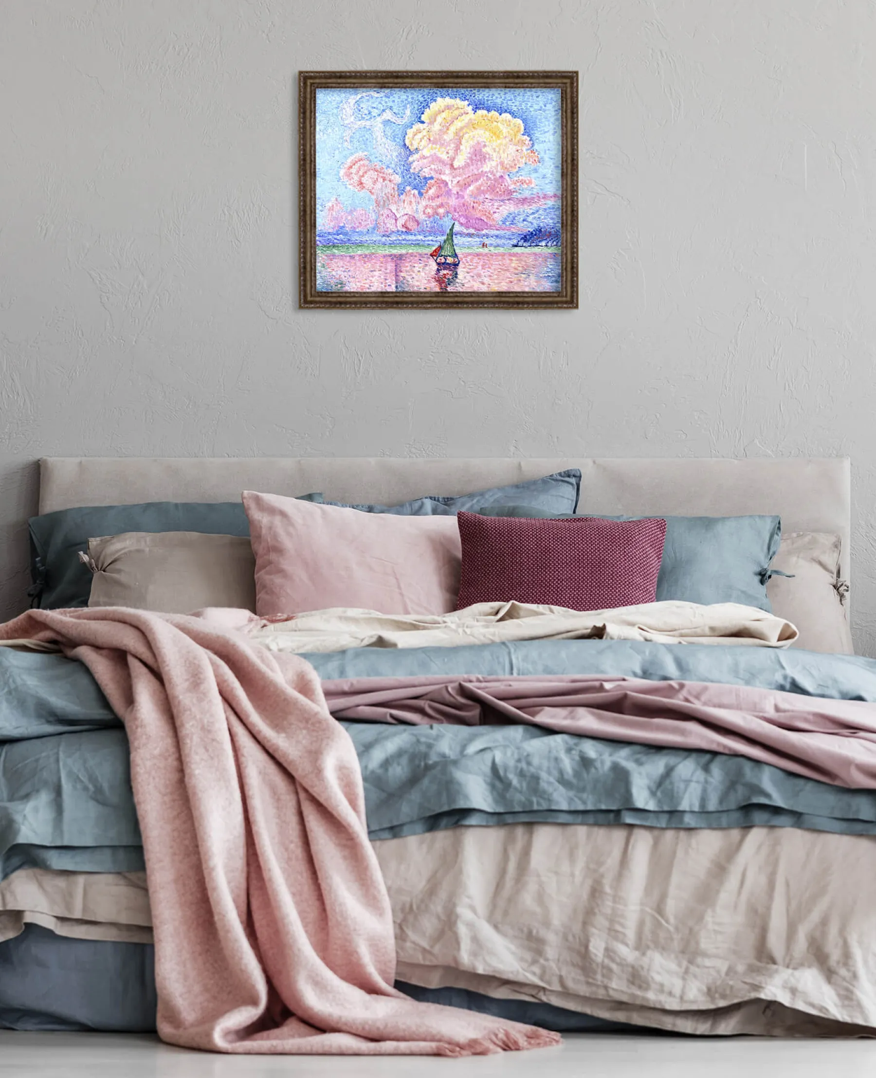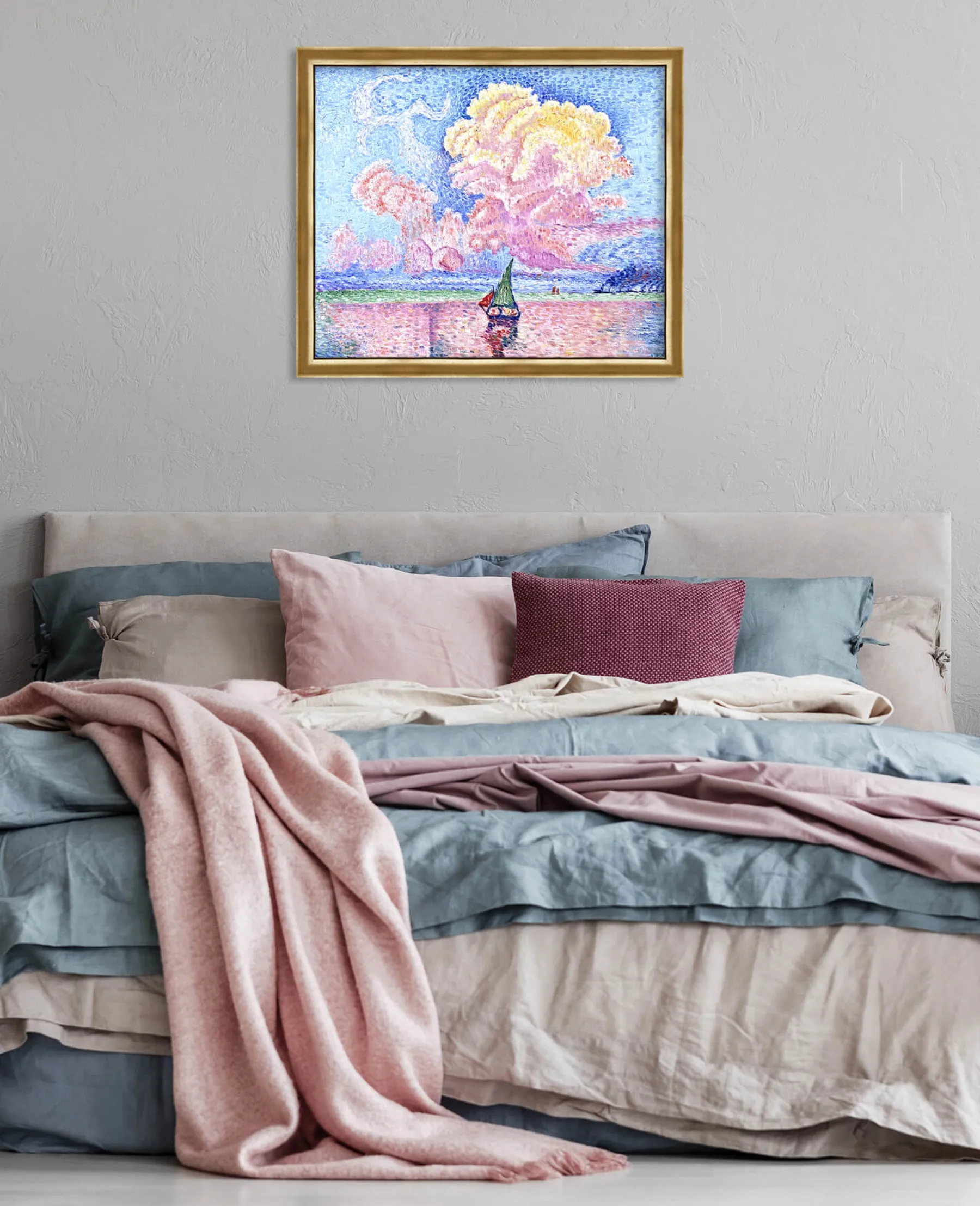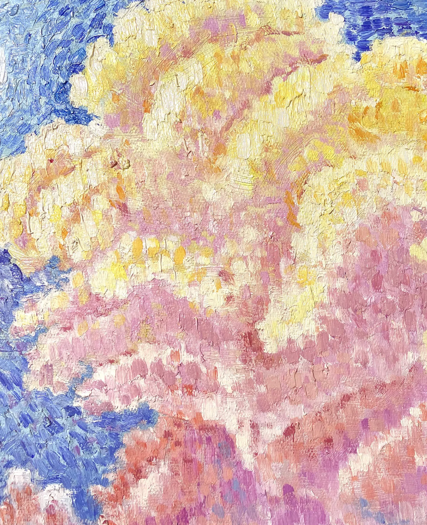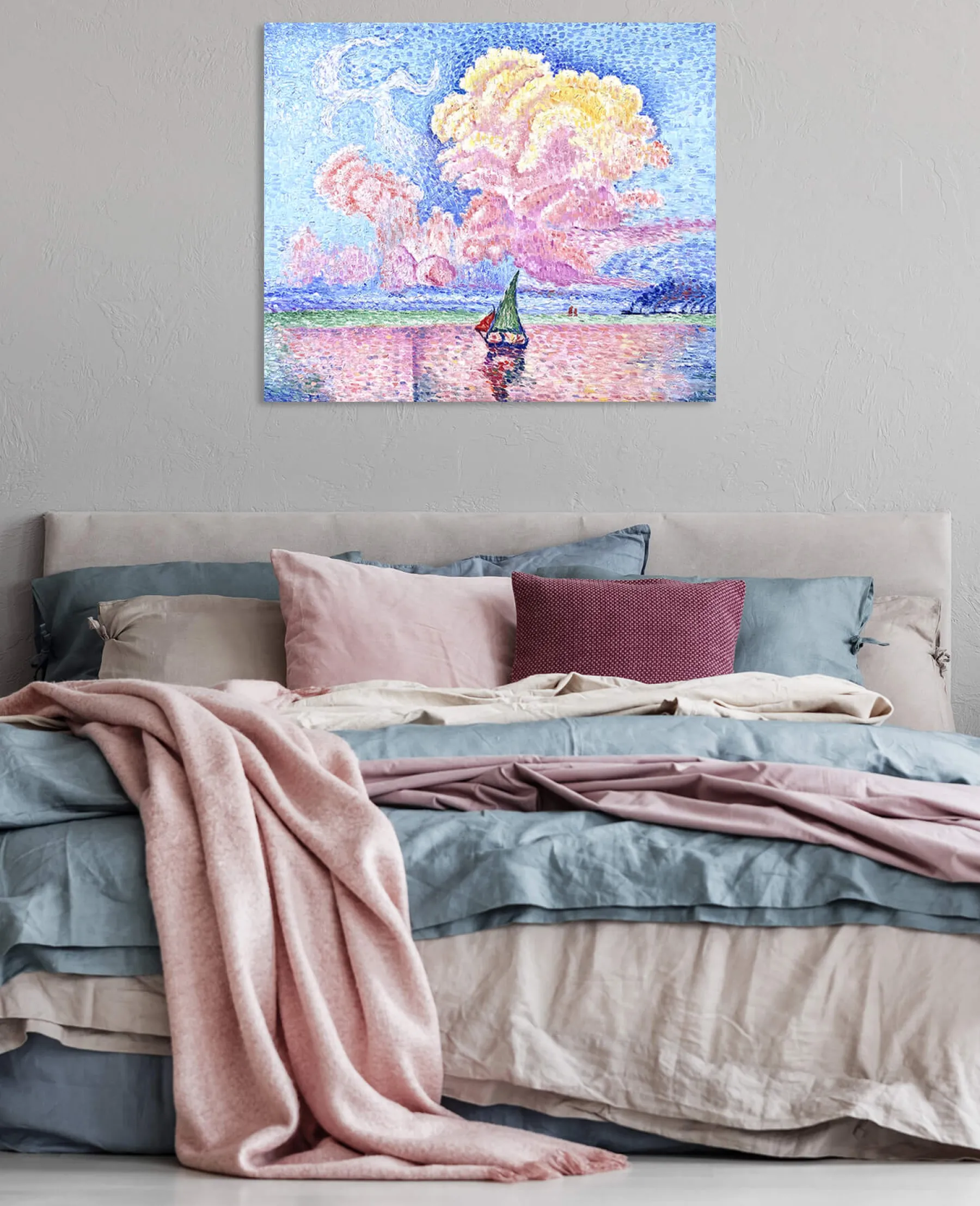 Paul Signac particularly enjoyed exploring the seashores and ports of the Mediterranean coast. The reflections and tranquility of the sea coexist with rosy, almost fairy-like colors. The artist tries to explain all the nuances that the sky takes on during a sunset on the French Riviera. To do this, the colors are not mixed but juxtaposed by small touches, according to the process of division, the essence of the pointillist movement. He became one of its most illustrious representatives.u0026nbsp;This style of painting can be found in several of his works, such as Antibes and Capo Di Noli.