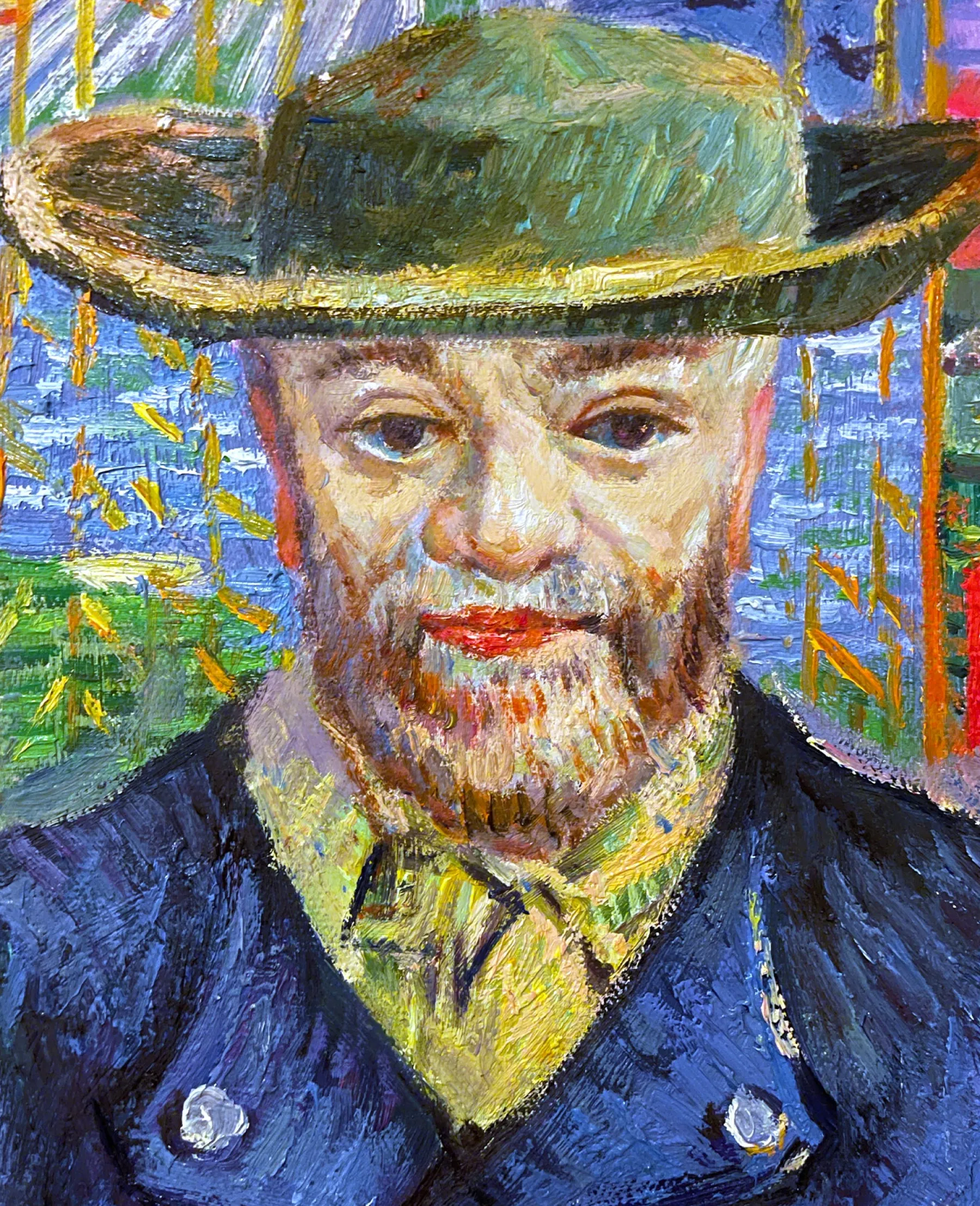 When Vincent Van Gogh arrived in Paris for the first time, he met one of the most delightful characters of the Parisian artistic milieu of the 1880s and 1890s, the man his painter friends affectionately called “Father Tanguy”. Nicknamed the “color crusher”, he ran a small color store on rue Clauzel and often accepted paintings in exchange for his wares. In this impressionnist work, the artist represents his subject in the style of the old Japanese sages on a background saturated with brightly colored Japanese prints.