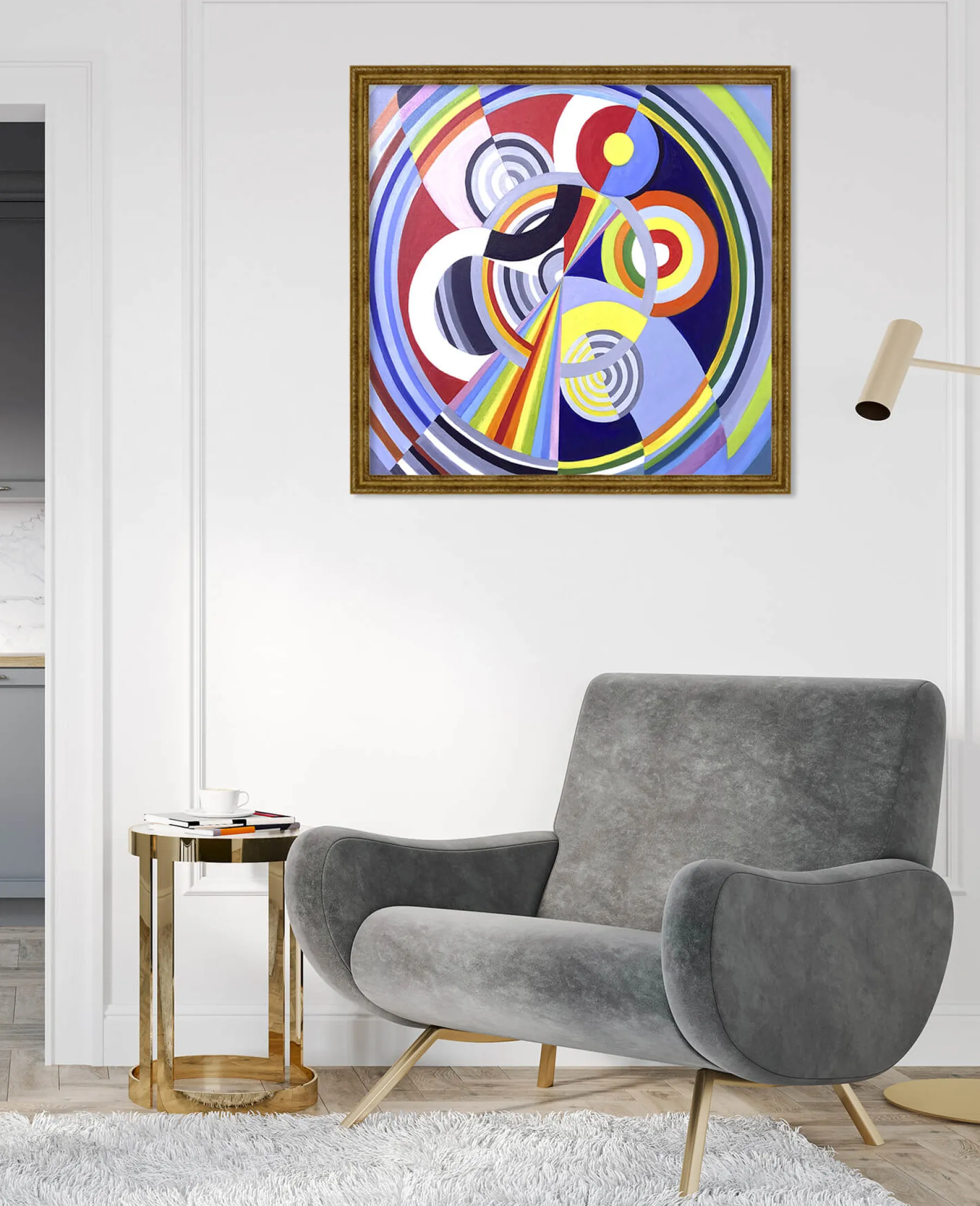 Following in the footsteps of certain color theorists, Robert Delaunay continued his search for a painting based on the law of color contrasts. Giving the illusion of movement, cubism is put at the service of a theme of a modern world in full swing.u0026nbsp;The work is similar to Rythmes by the same artist.