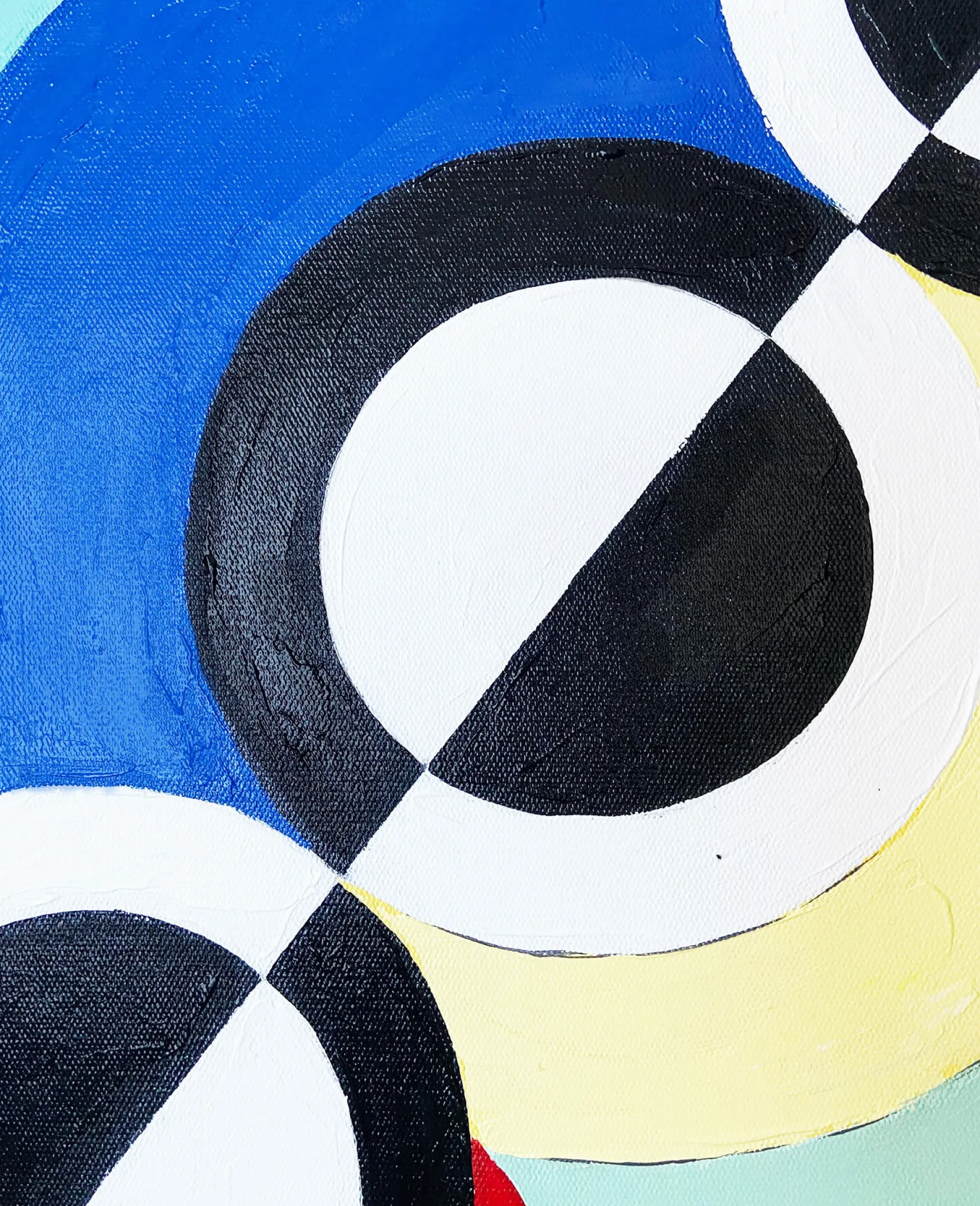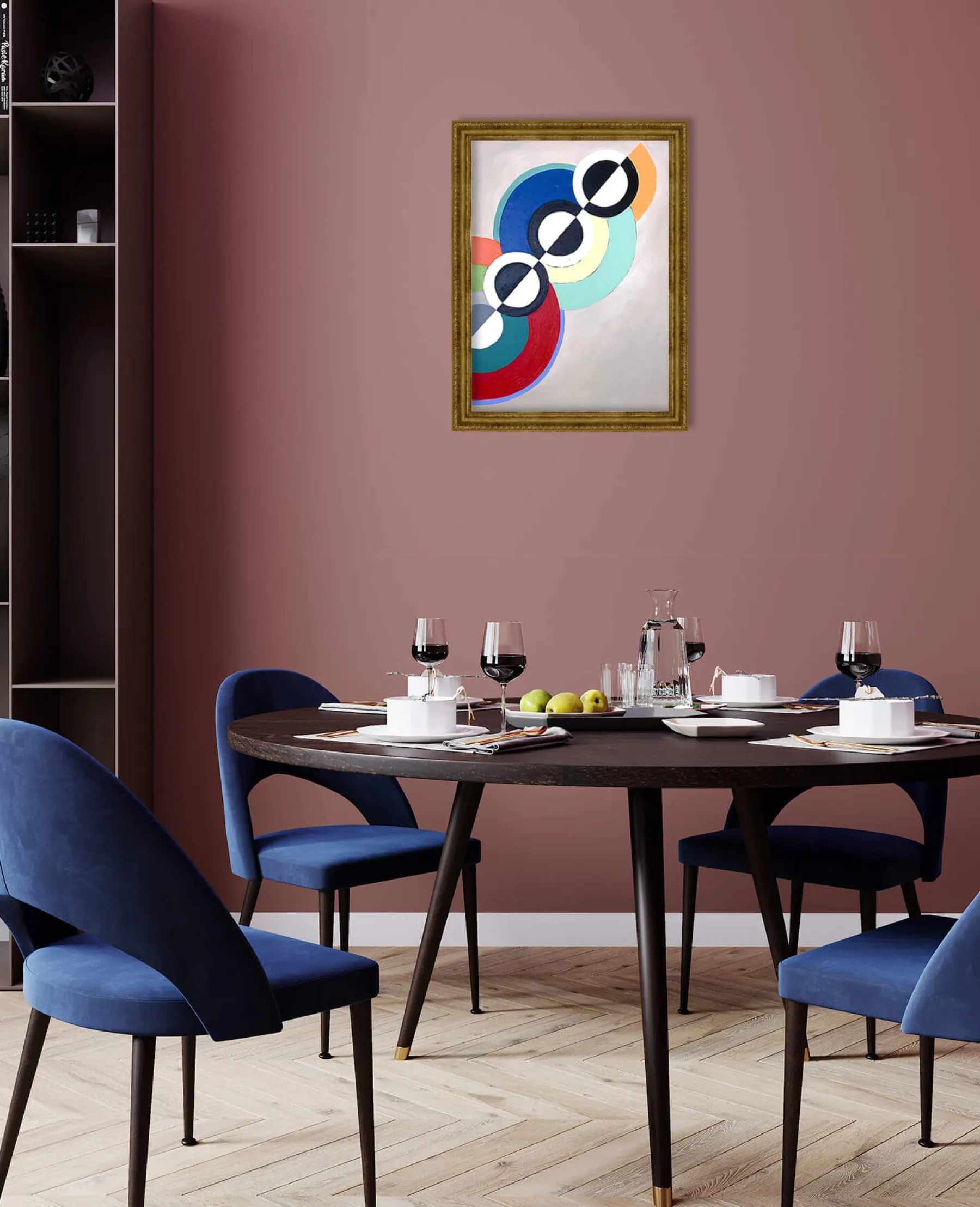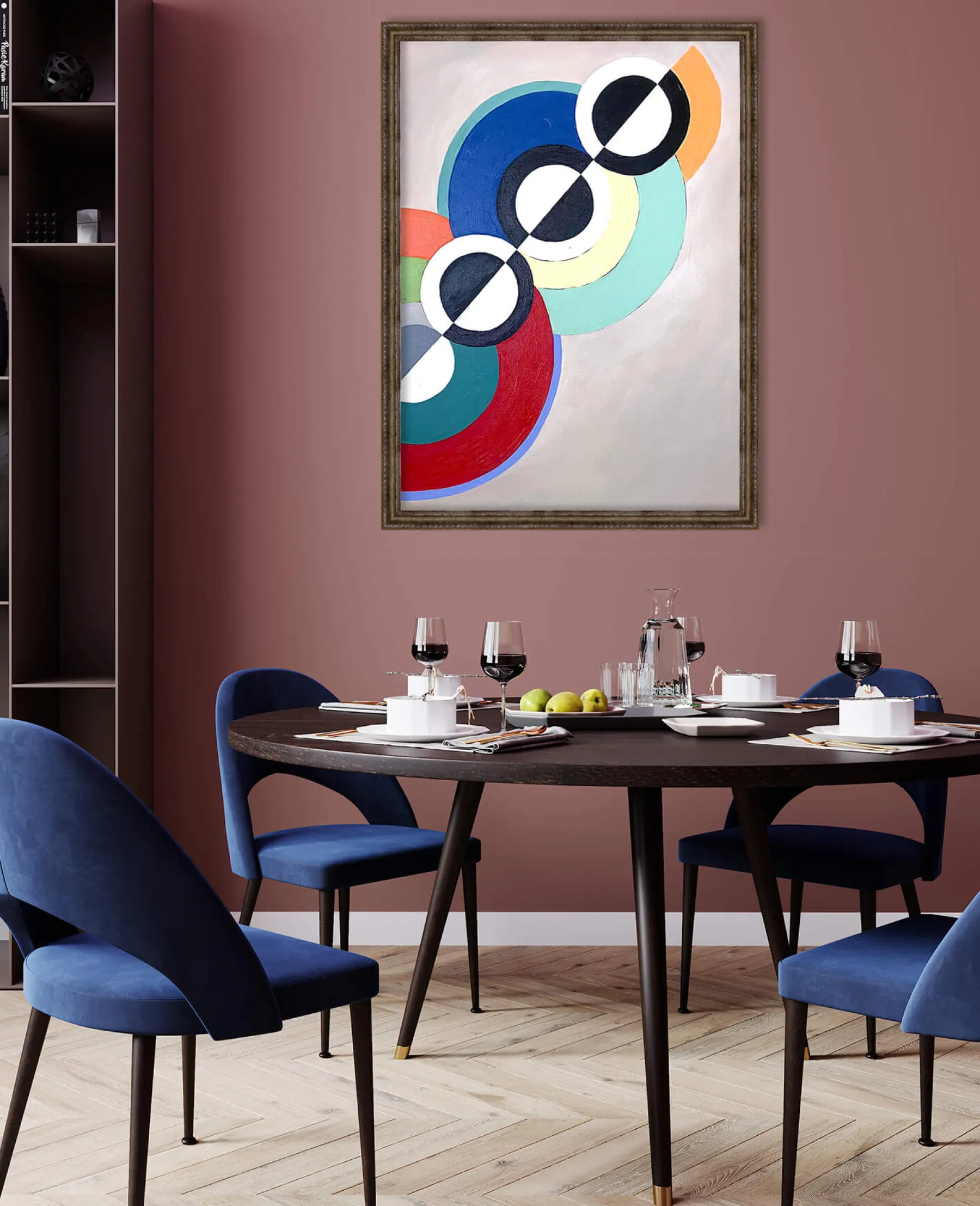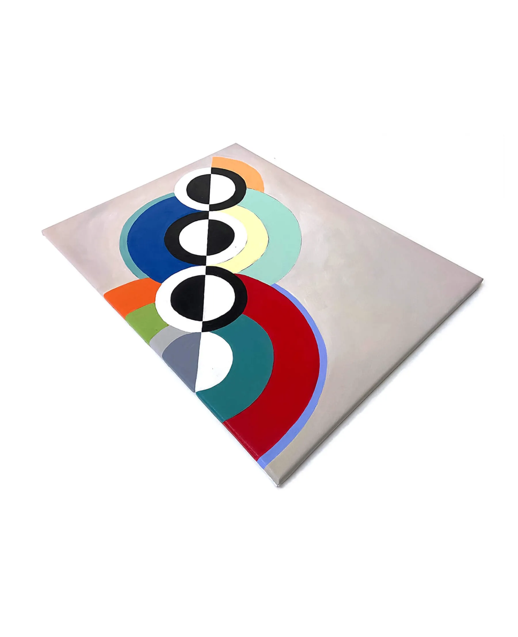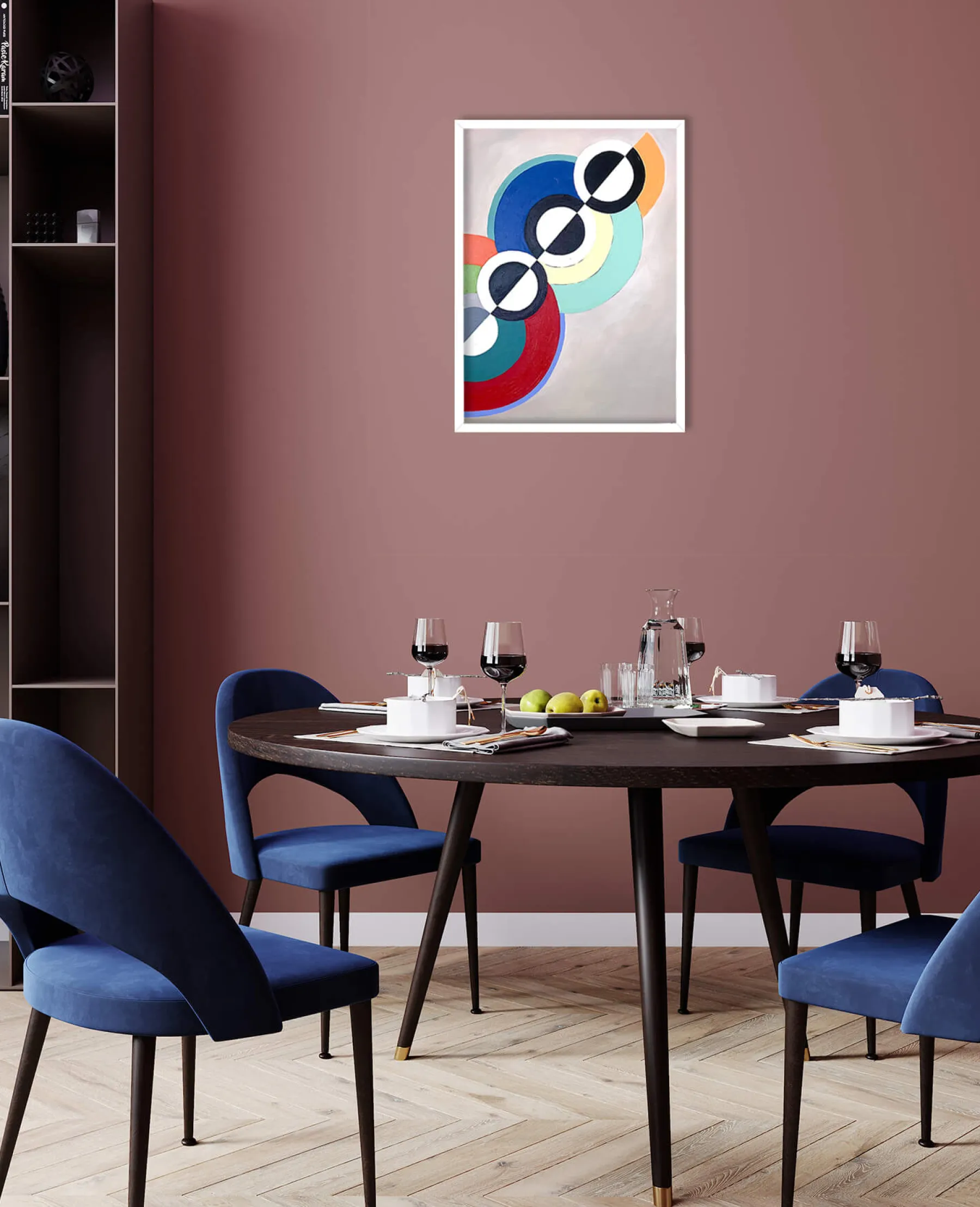 In this work, Robert Delaunay plays with colors and their movements to express rhythm. The repetition of the circular forms and the very nature of the circle refer to the cyclical movement, incessant, to the time that unfolds indefinitely.u0026nbsp;The work is similar to Rythme no1 by the same artist.