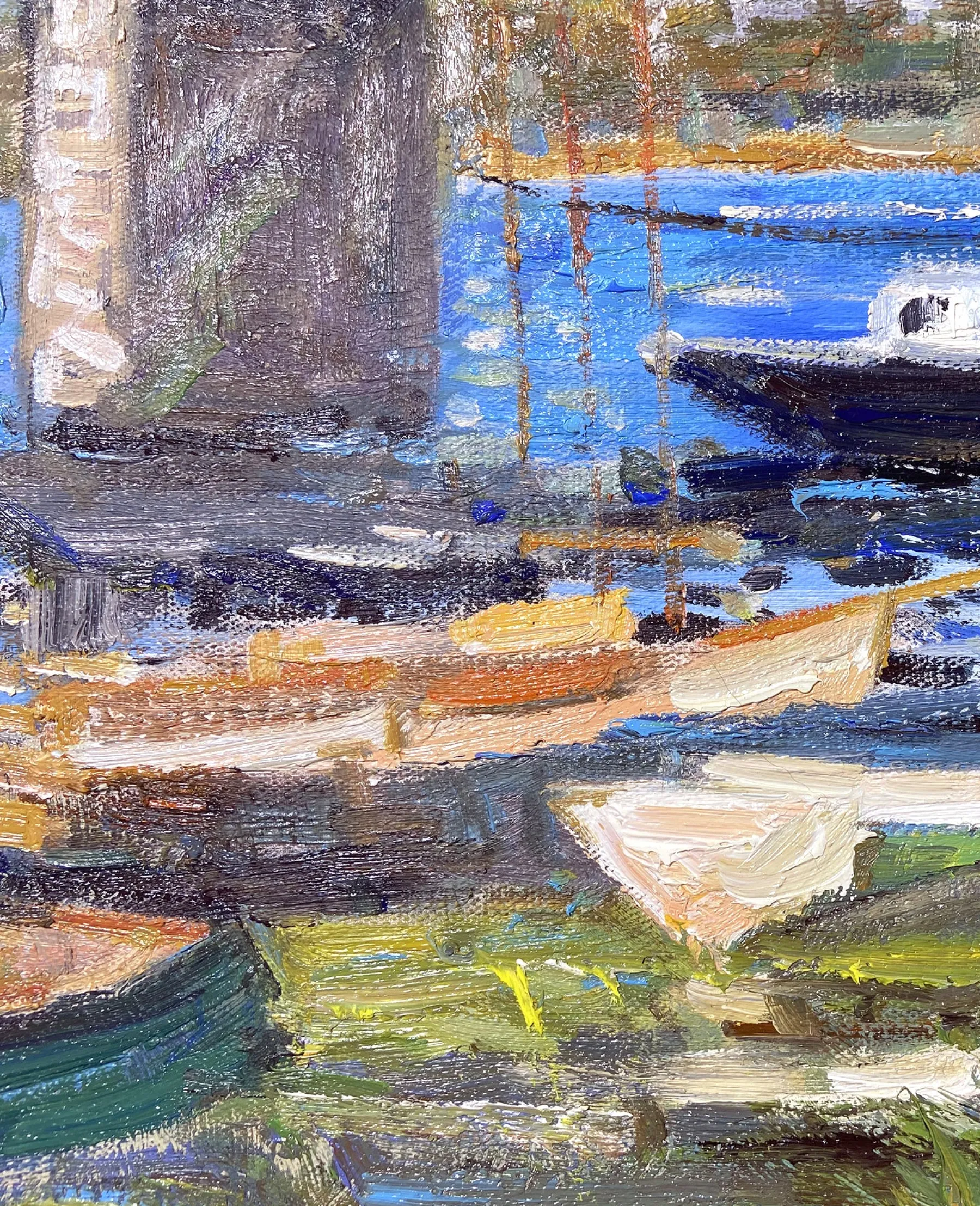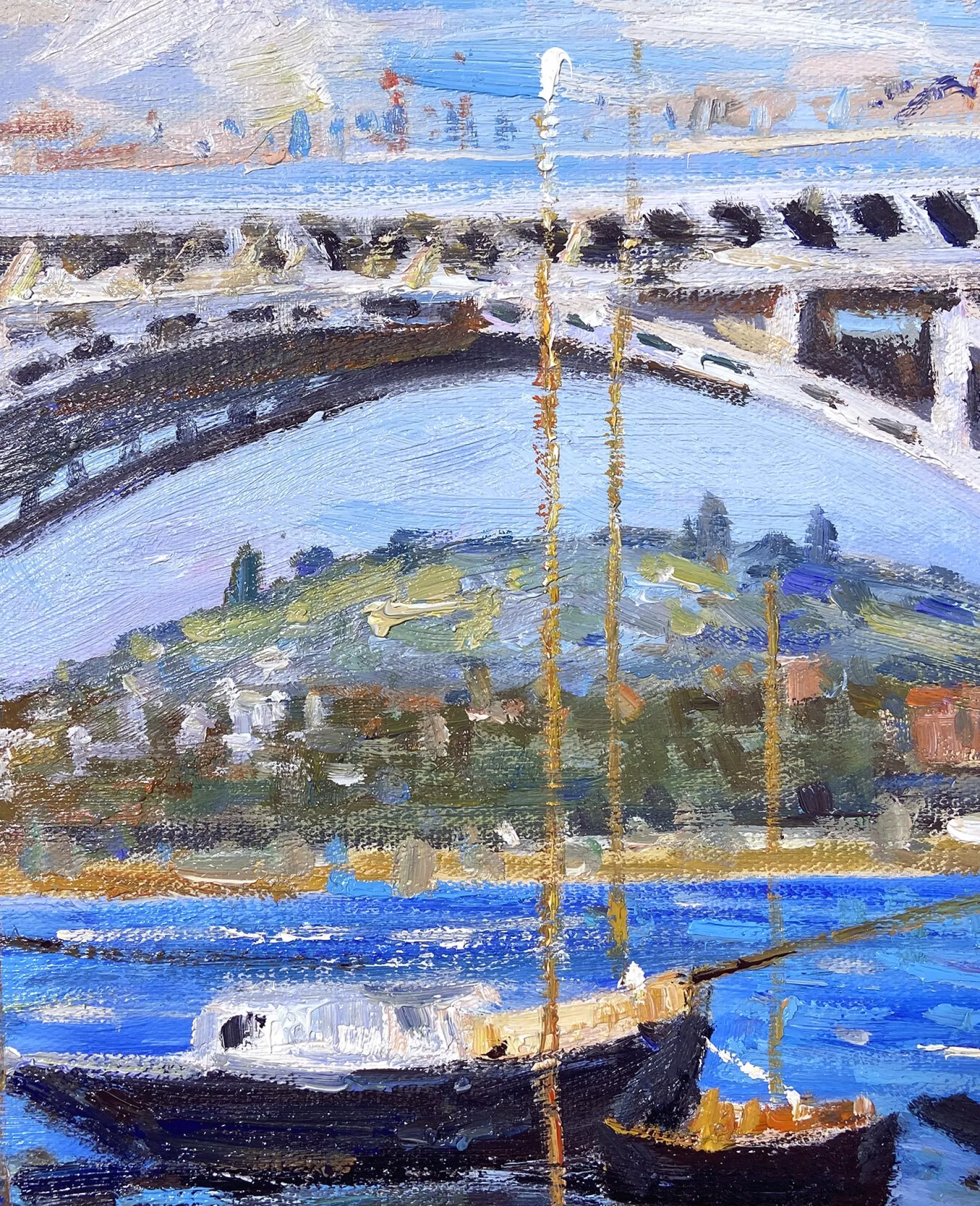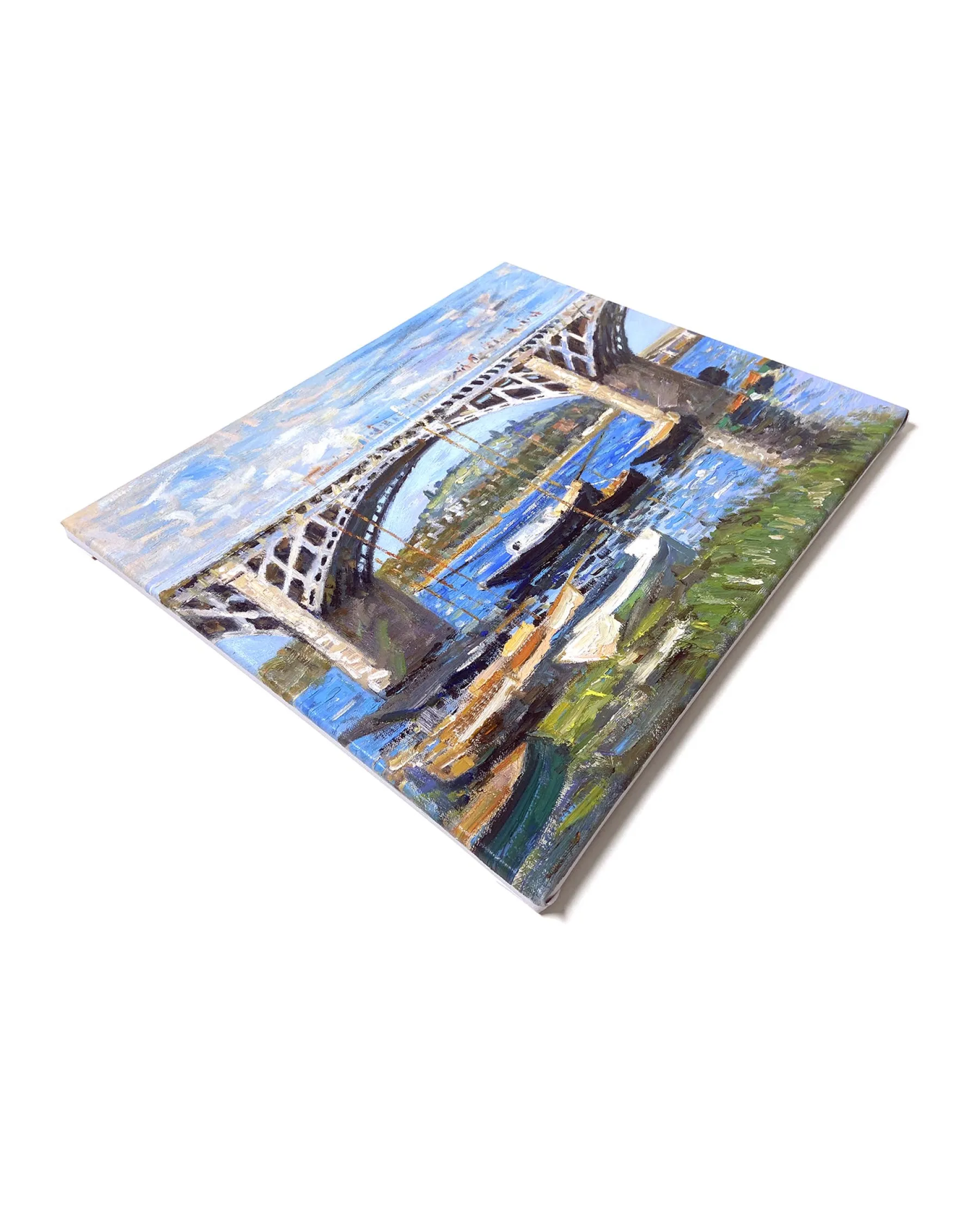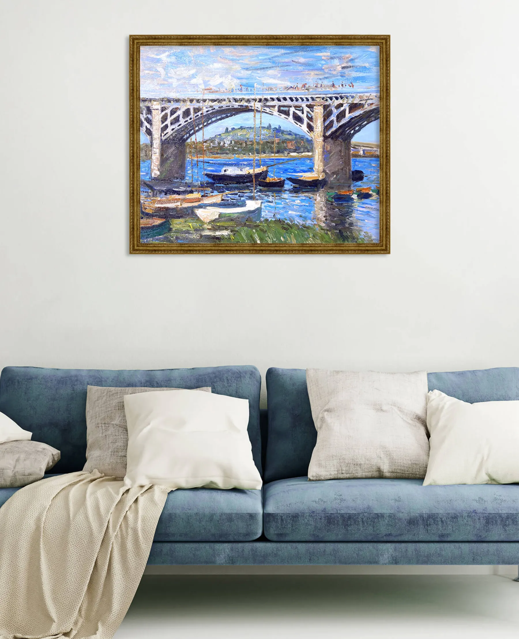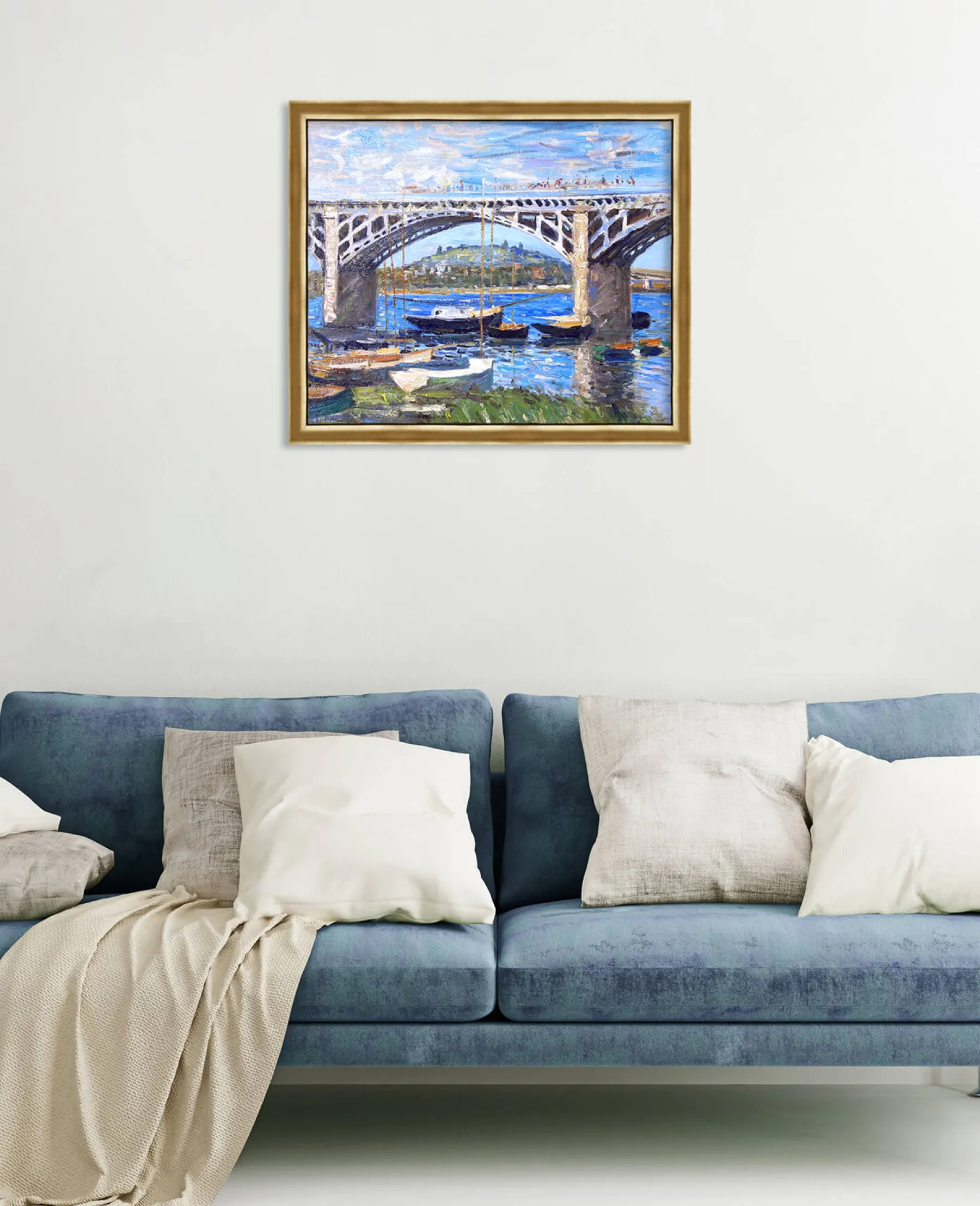 The Argenteuil bridge was represented seven times by Claude Monet. This shows how attached the artist was to this motif. In this work, the foreground is occupied by sailboats at the mooring and the effects of light on the masts allow for complementary plays of color, which the Impressionists appreciated so much at the time.