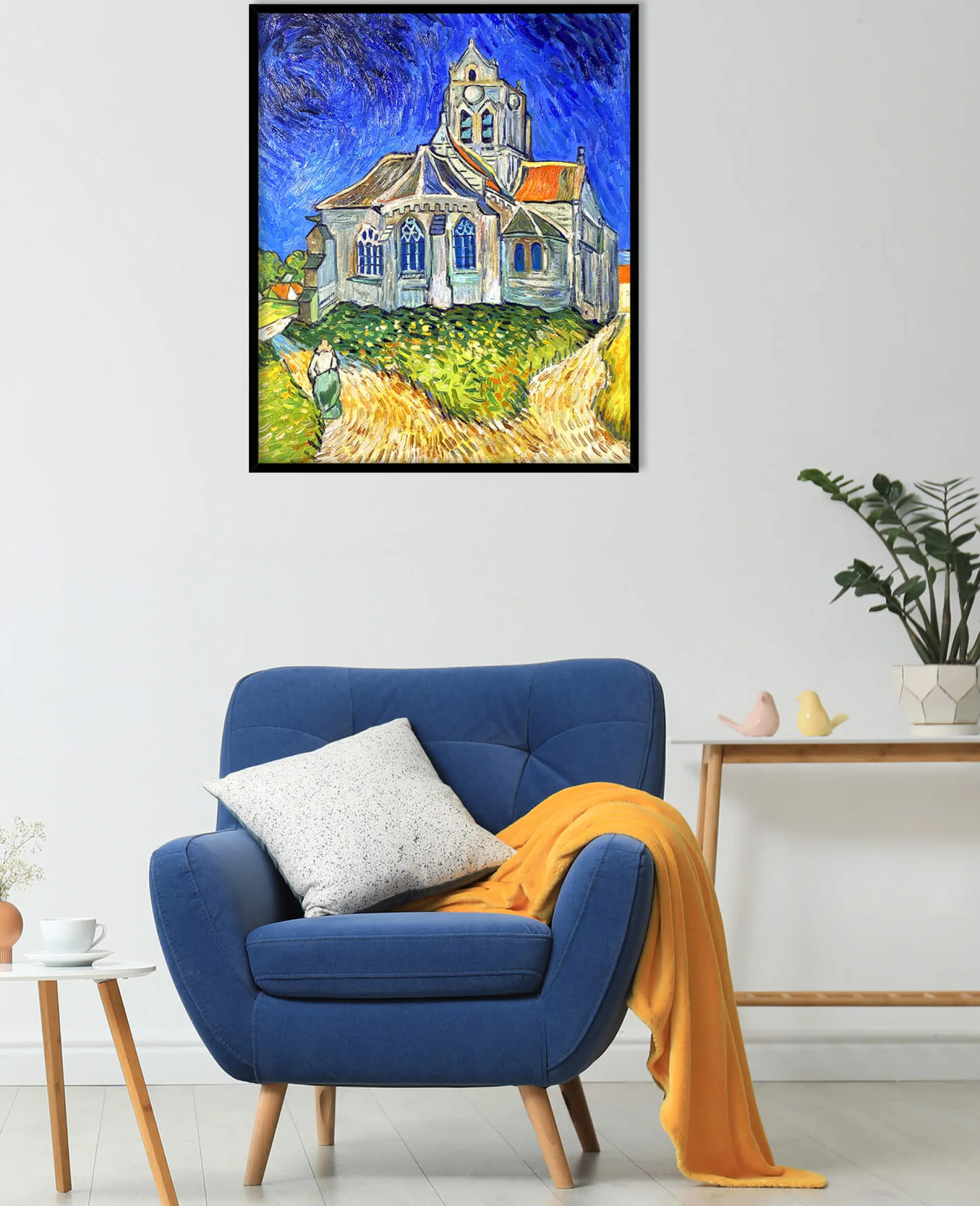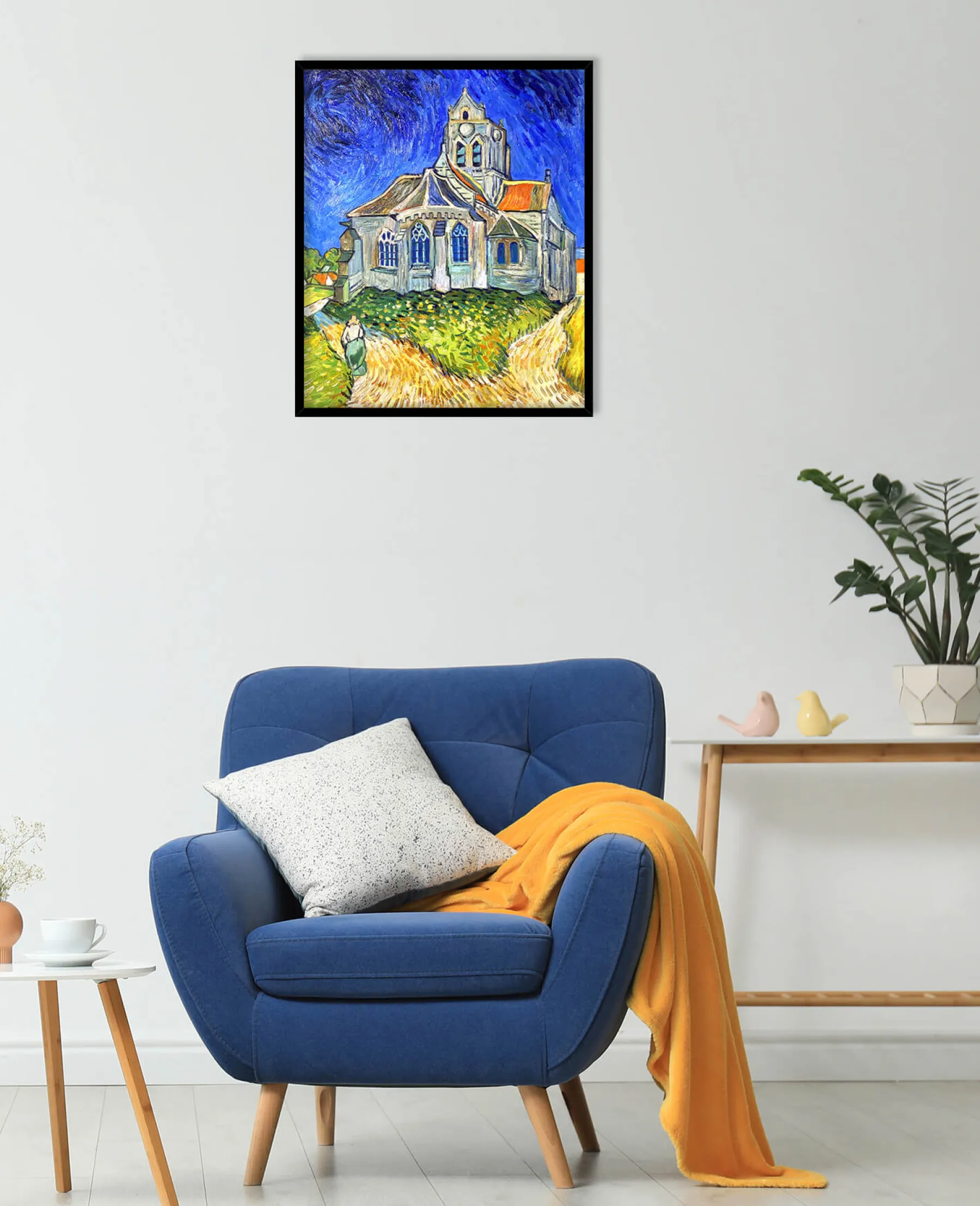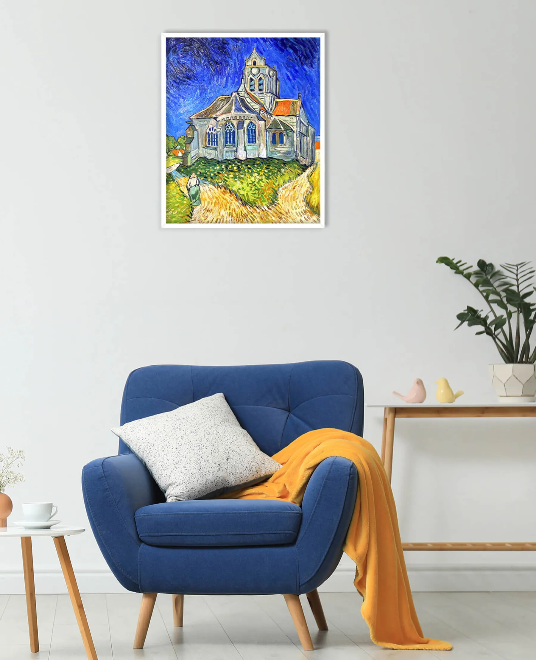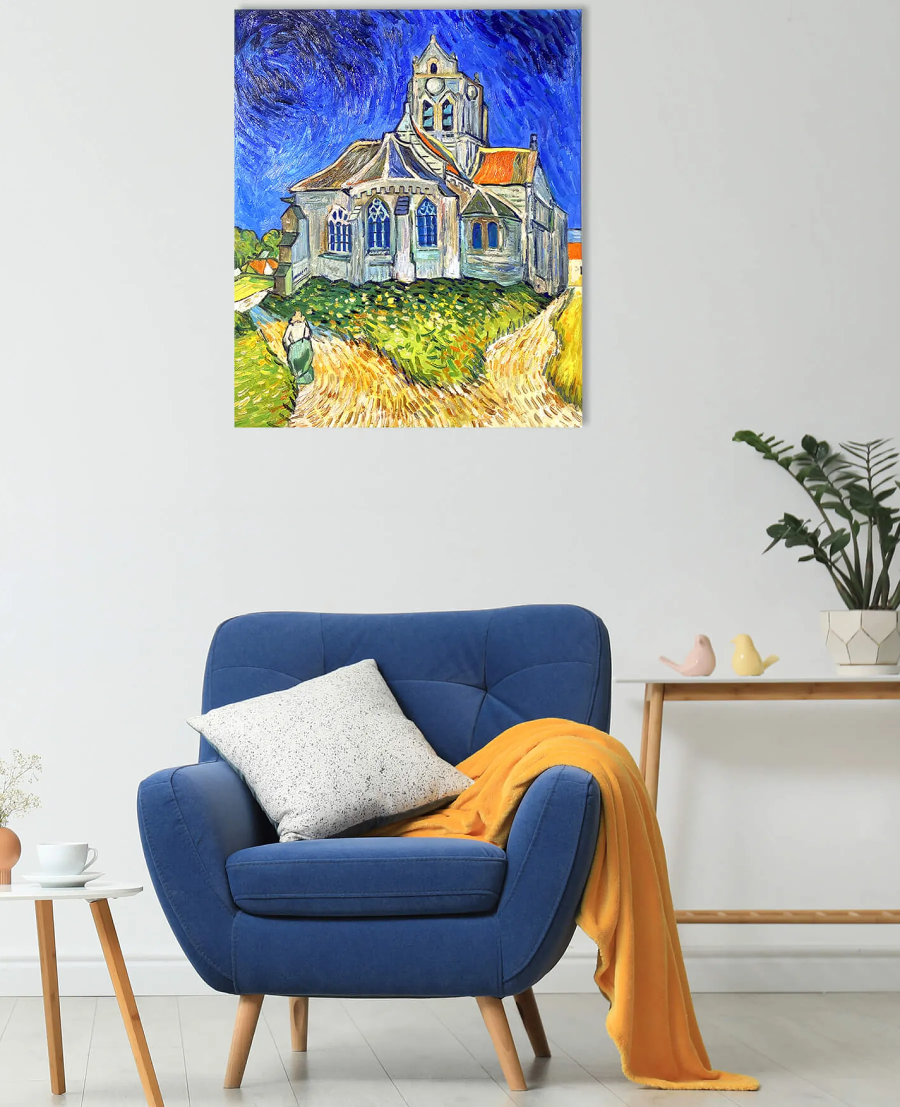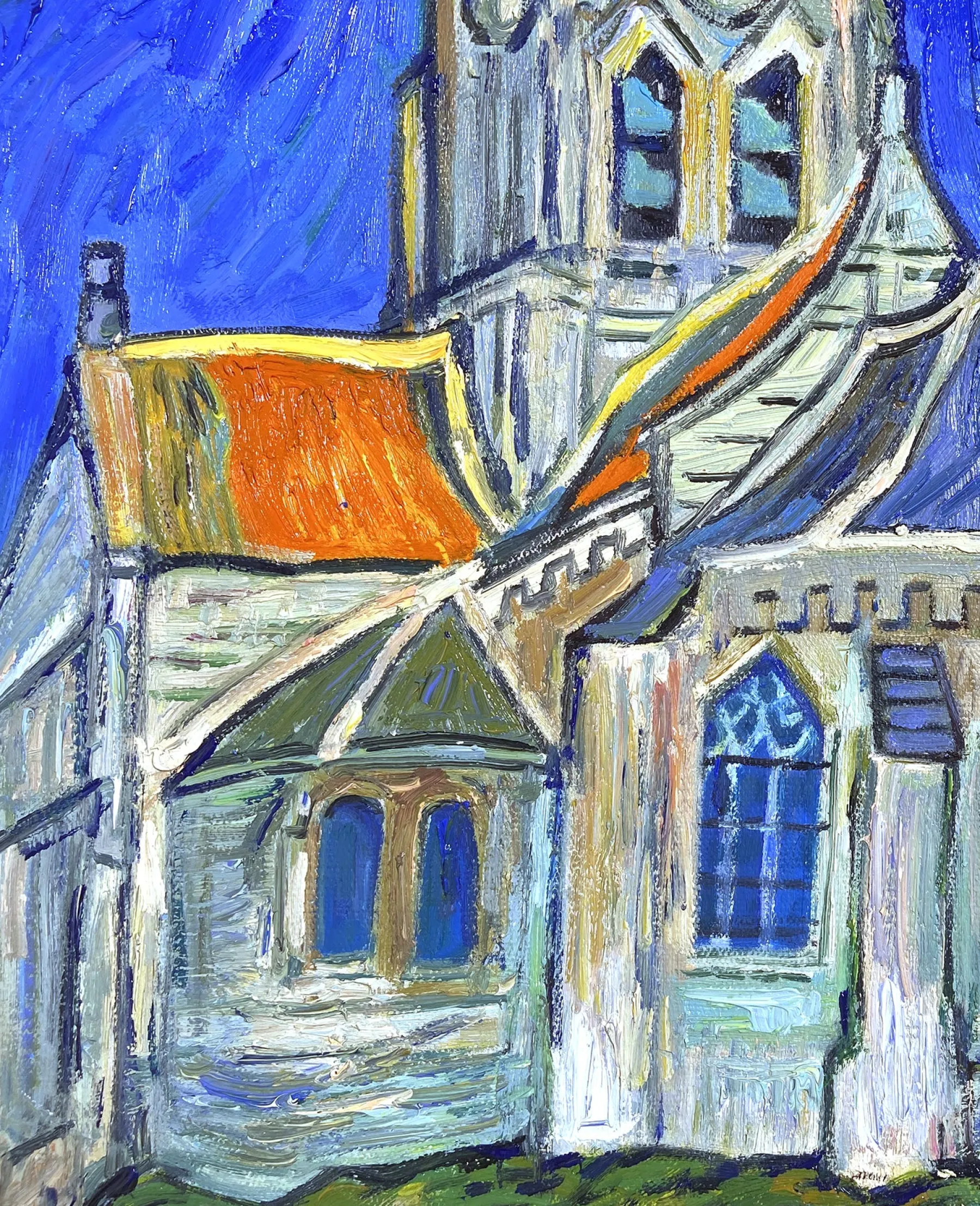This impressionnist painting is one of the last by Vincent Van Gogh. The main theme of the work is the church of Auvers-sur-Oise which occupies almost the entire canvas. The flamboyant monument seems to be ready to break apart under pressure from the ground and the two roads that surround it.