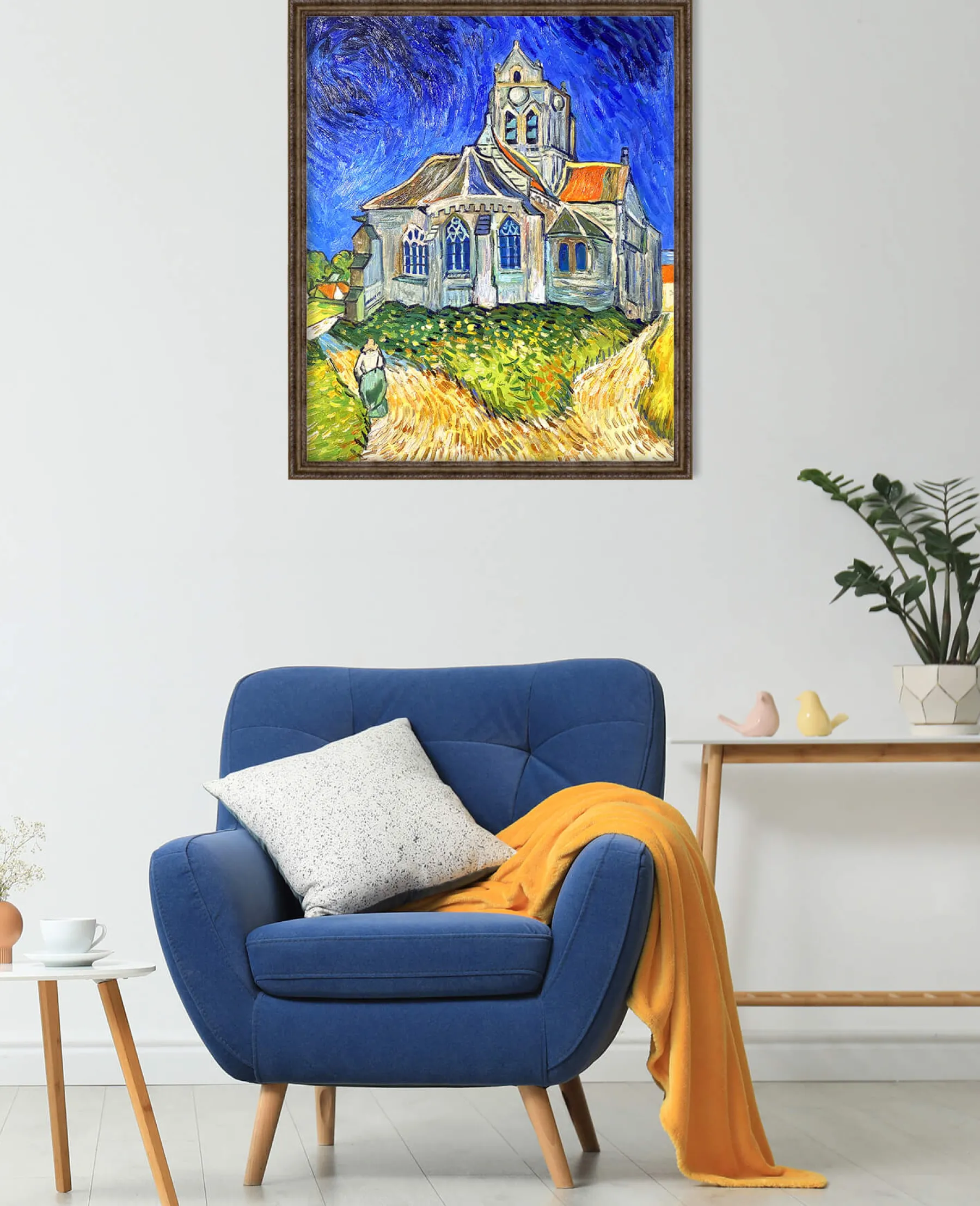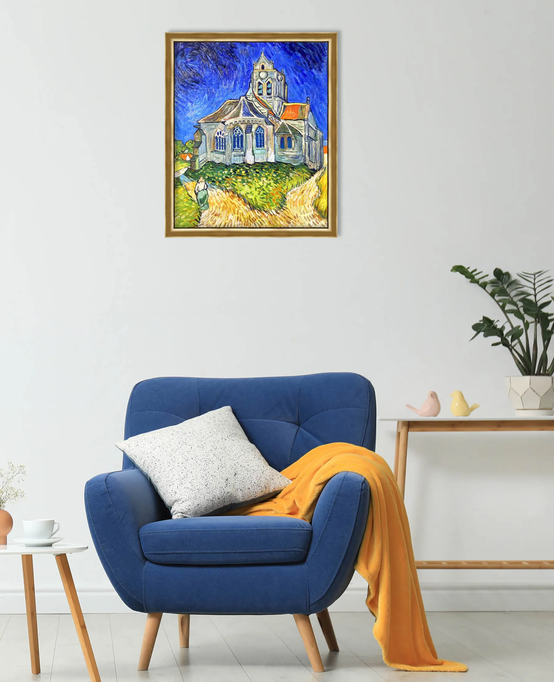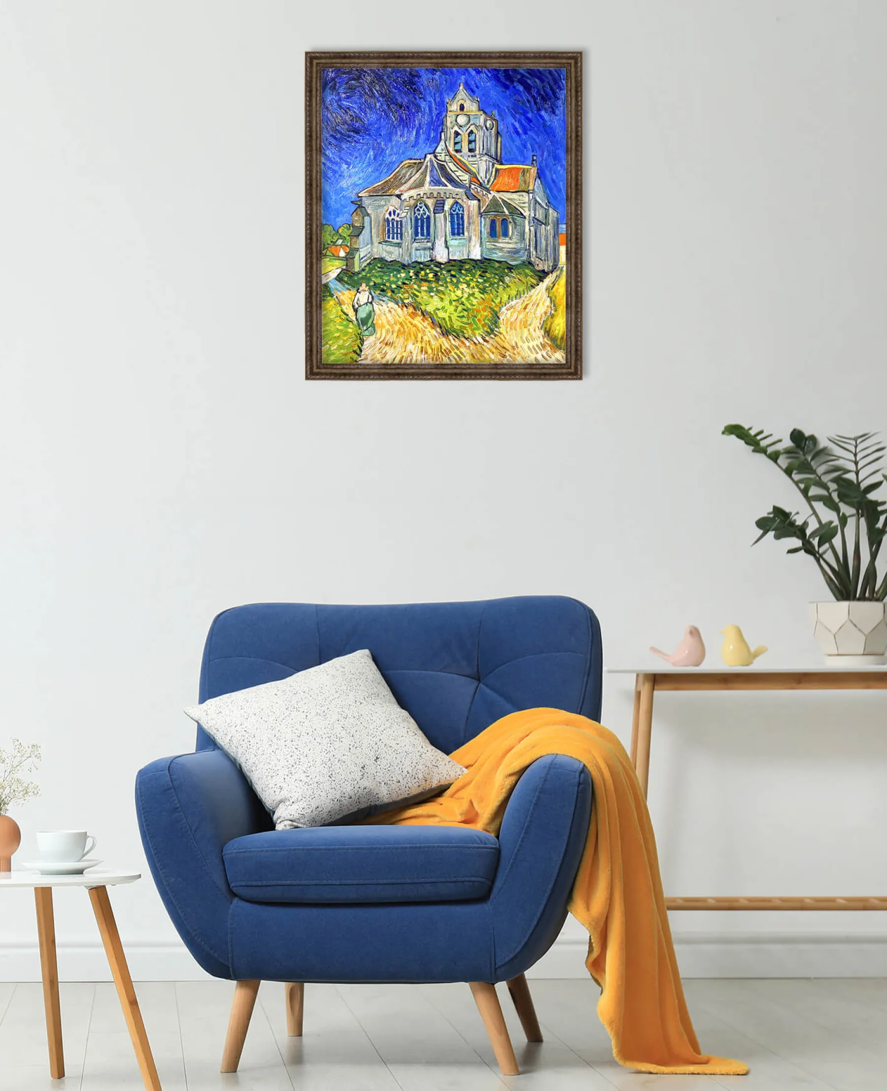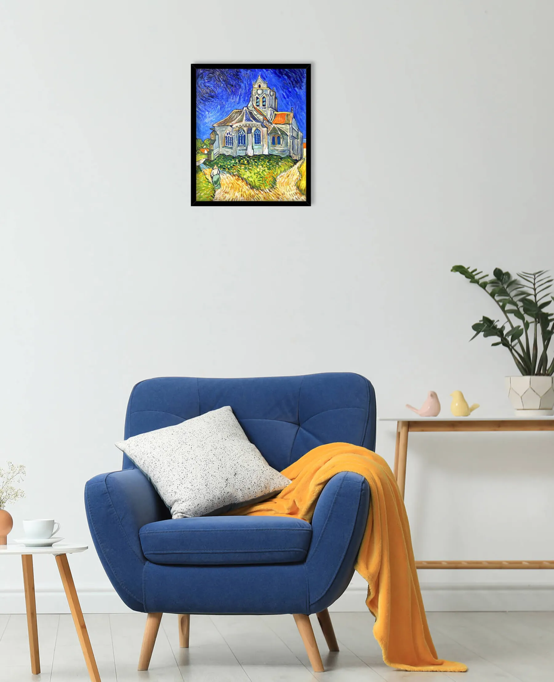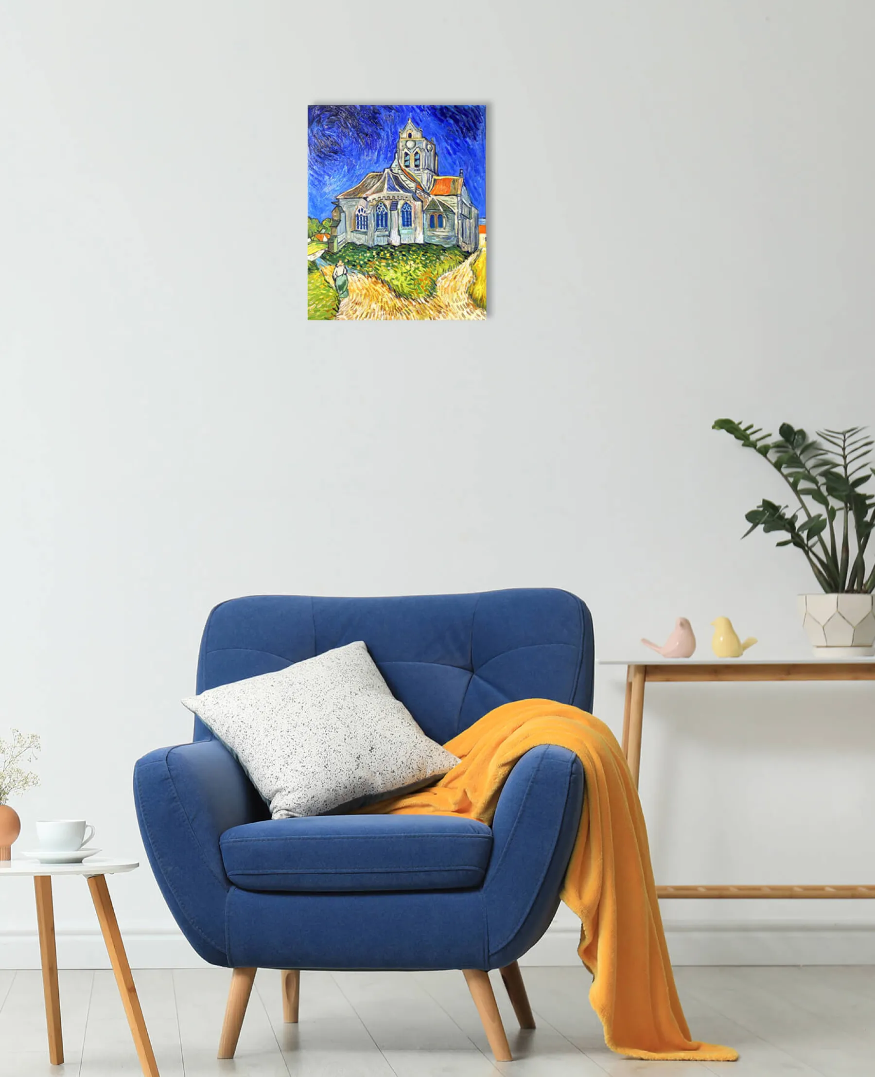 This impressionnist painting is one of the last by Vincent Van Gogh. The main theme of the work is the church of Auvers-sur-Oise which occupies almost the entire canvas. The flamboyant monument seems to be ready to break apart under pressure from the ground and the two roads that surround it.