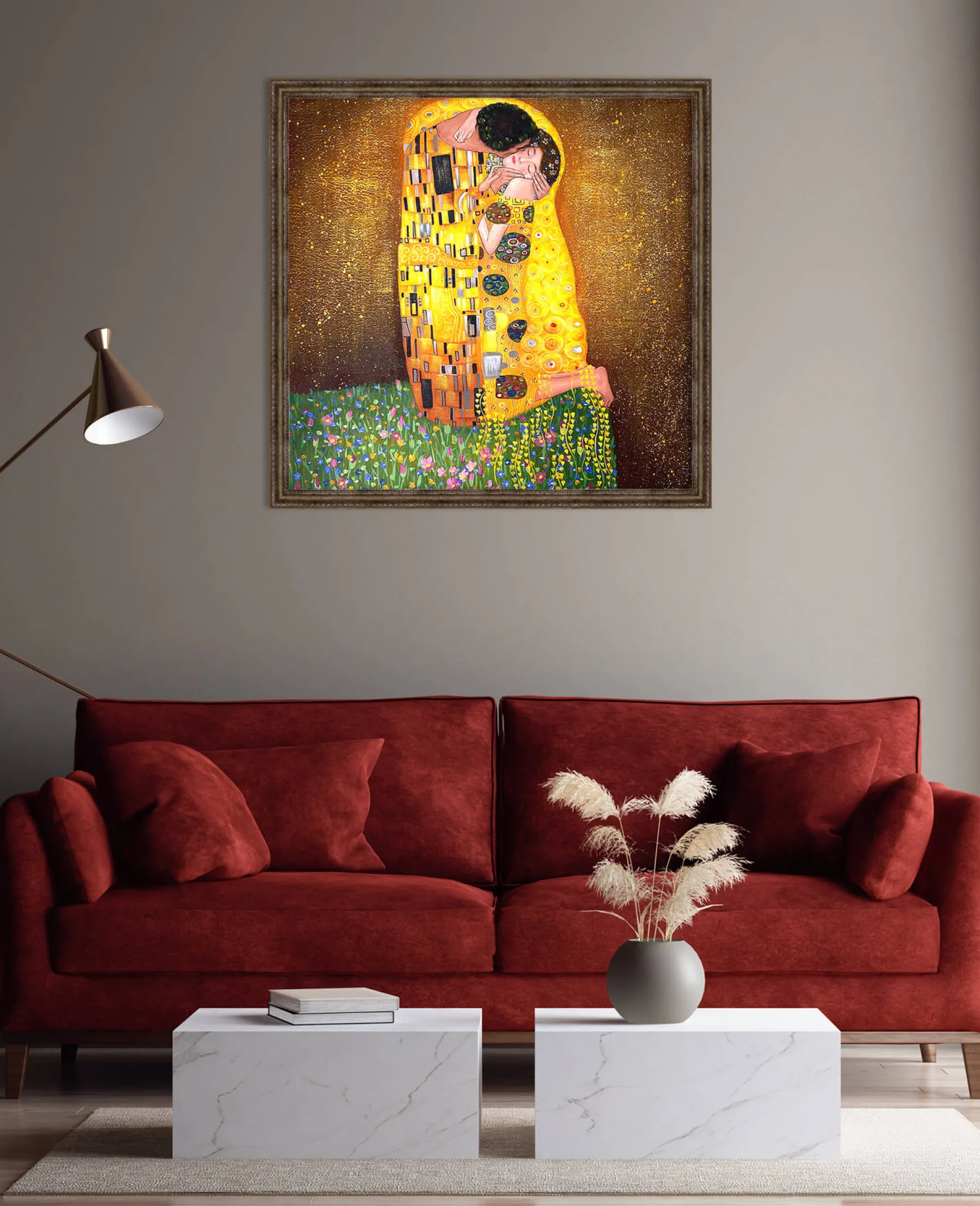 This is Gustav Klimt’s most popular work. He painted this work between 1907 and 1908, at the height of his golden period. The work presents a couple embracing, hidden under a huge golden sheet that gives a dimension of eternity to the couple that it encloses and protects: on the side of the man, we observe symbols of strength, virility and masculinity; on the side of the woman, Klimt presents rather symbols of femininity and motherhood.