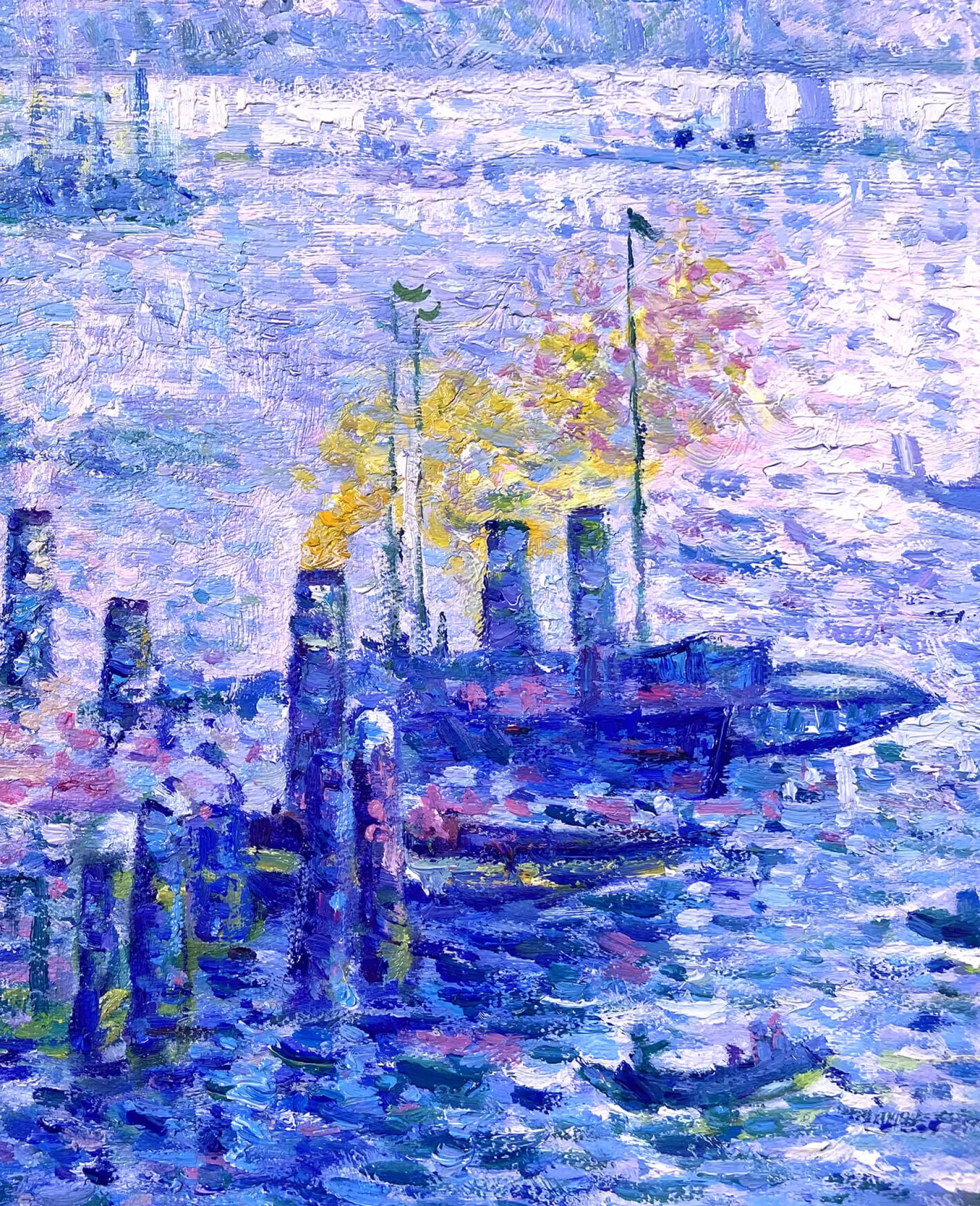 In 1906, Paul Signac visited the port of Rotterdam and was greatly impressed. On a postcard with a harbor scene, he wrote: “From my window! What a work! I am enthusiastic but amazed”. The following year he made this painting from a drawing that is also in the collection of the Boijmans Van Beuningen Museum. The combination of individual touches of paint creates shimmering light effects.u0026nbsp;The industrial atmosphere contrasts with that seen in his other port depiction, the Port of St Tropez.