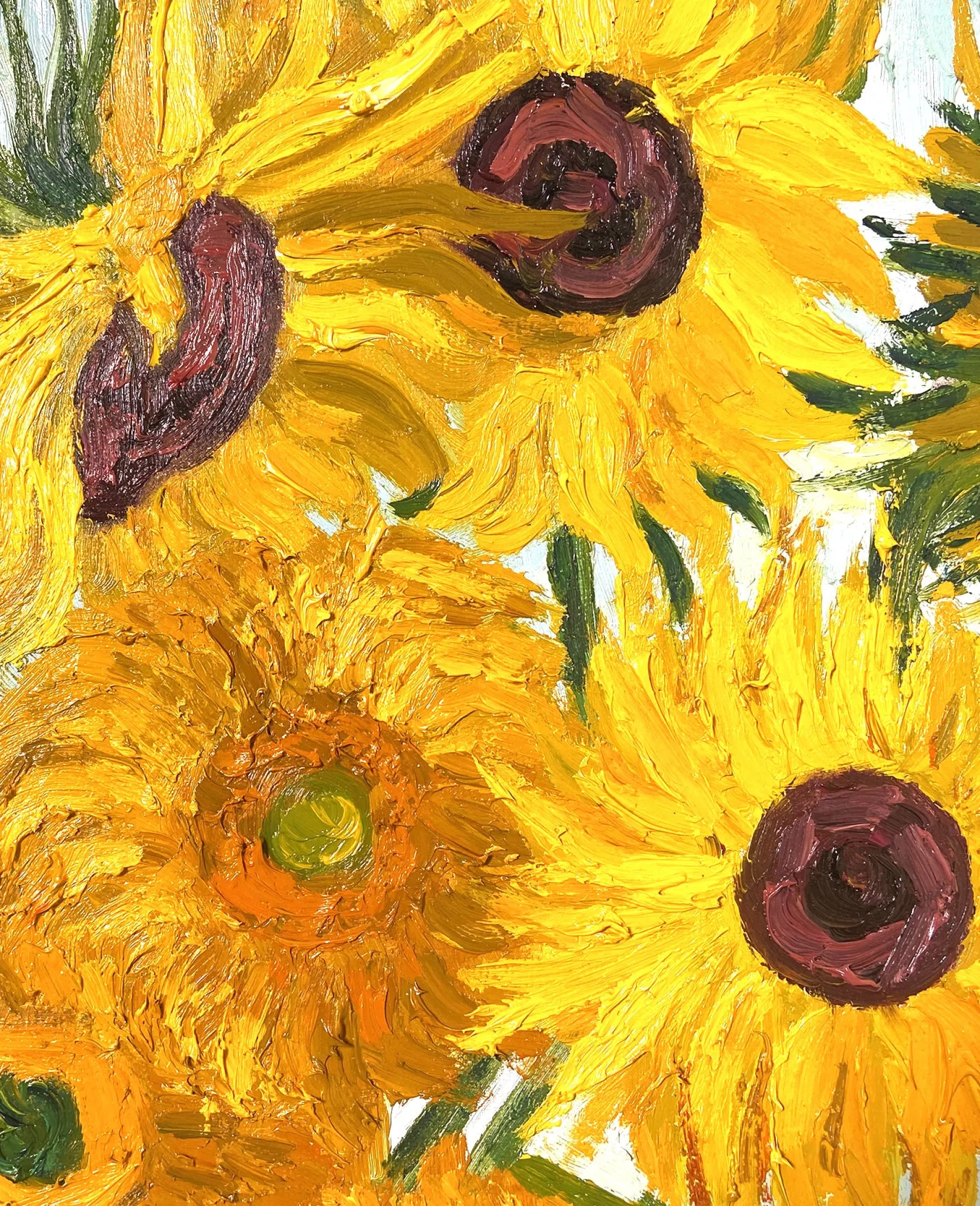 This painting by Vincent Van Gogh shows a terracotta vase in which sunflowers are placed in all stages of their life. Everyone can see in it an image of life passing by, and this is undoubtedly what touches us in this painting.u0026nbsp;The work is similar to the Vase with Irises by the same artist.